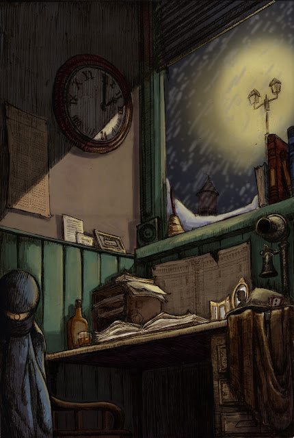 Let me know if I should make any changes, I have work till 5 tomorrow but I can try to fix things after that if there's an issue. I used Joe's black and white painting for the newspaper photo and I added our names at the end of the story because I needed to fill the page up. As for the moment I had a hard time interpreting the station master character but let me know if I should fix anything.